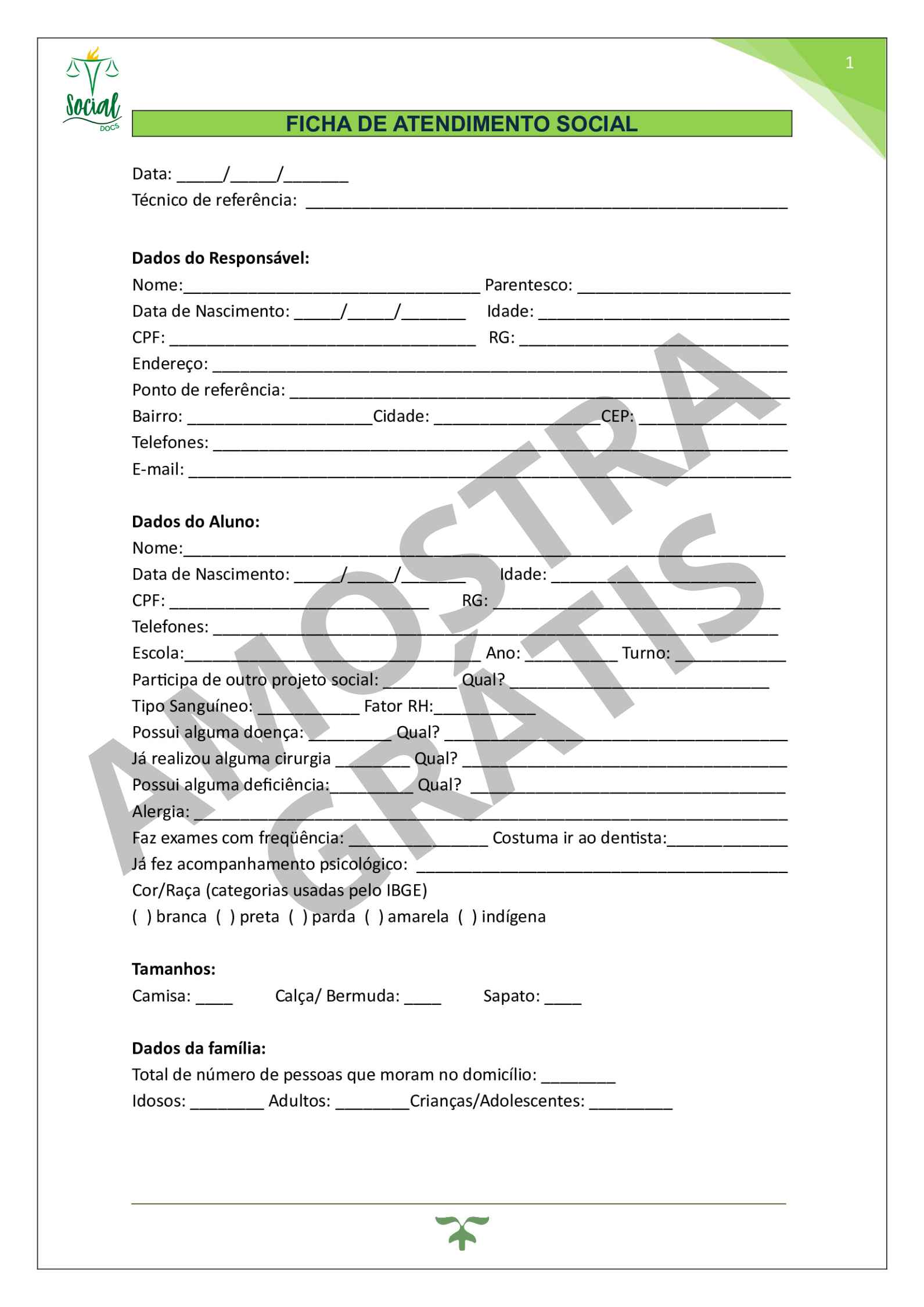 Modelo de Ficha de Registro Social – Acompanhamento Mensal de Usuário(a)