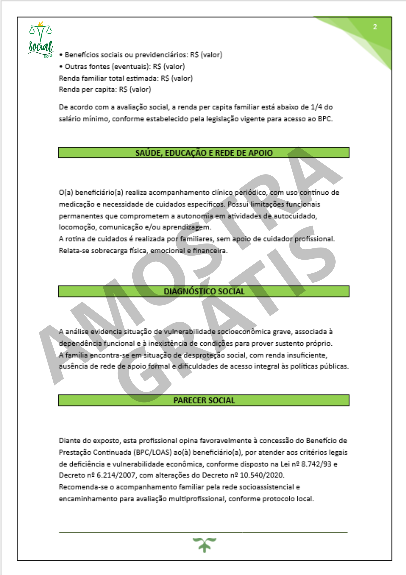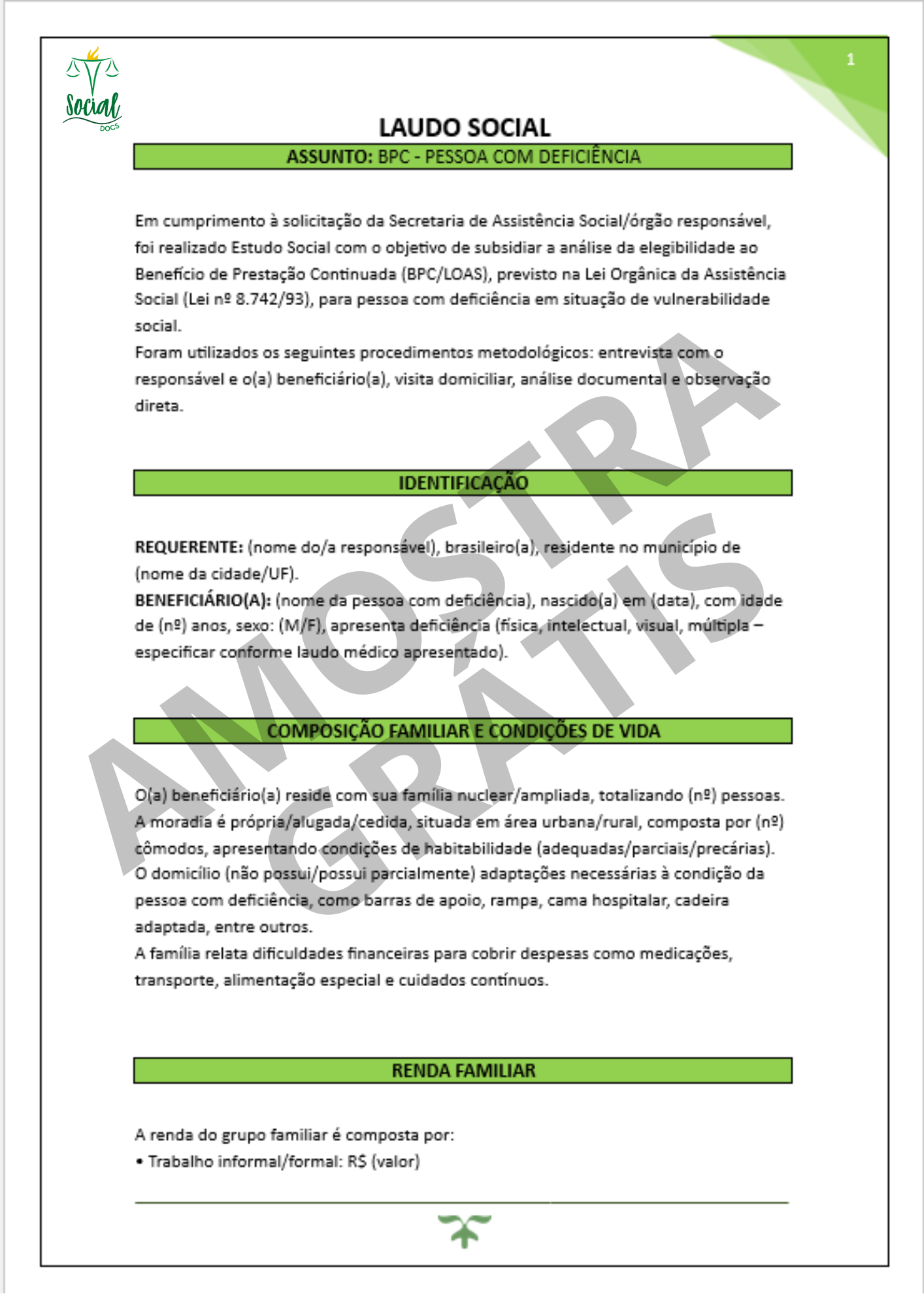 Modelo de Laudo Social – Pessoa com Deficiência e Situação de Vulnerabilidade (BPC/LOAS)