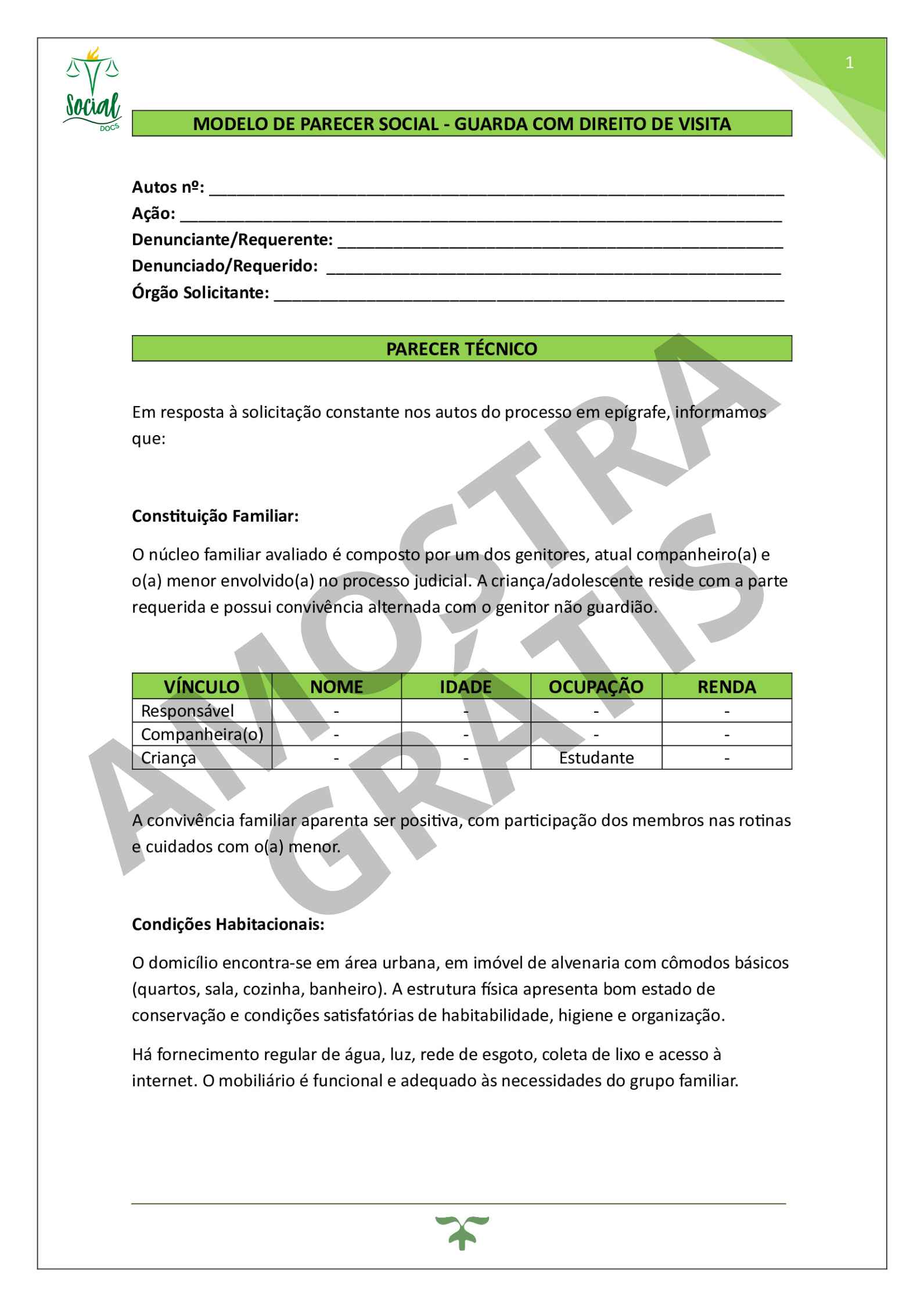 Modelo de Parecer Social – Regulação de Guarda Compartilhada com Direito de Visitas