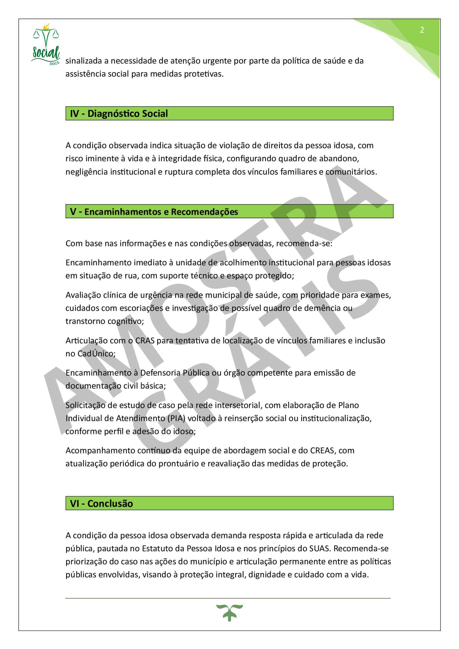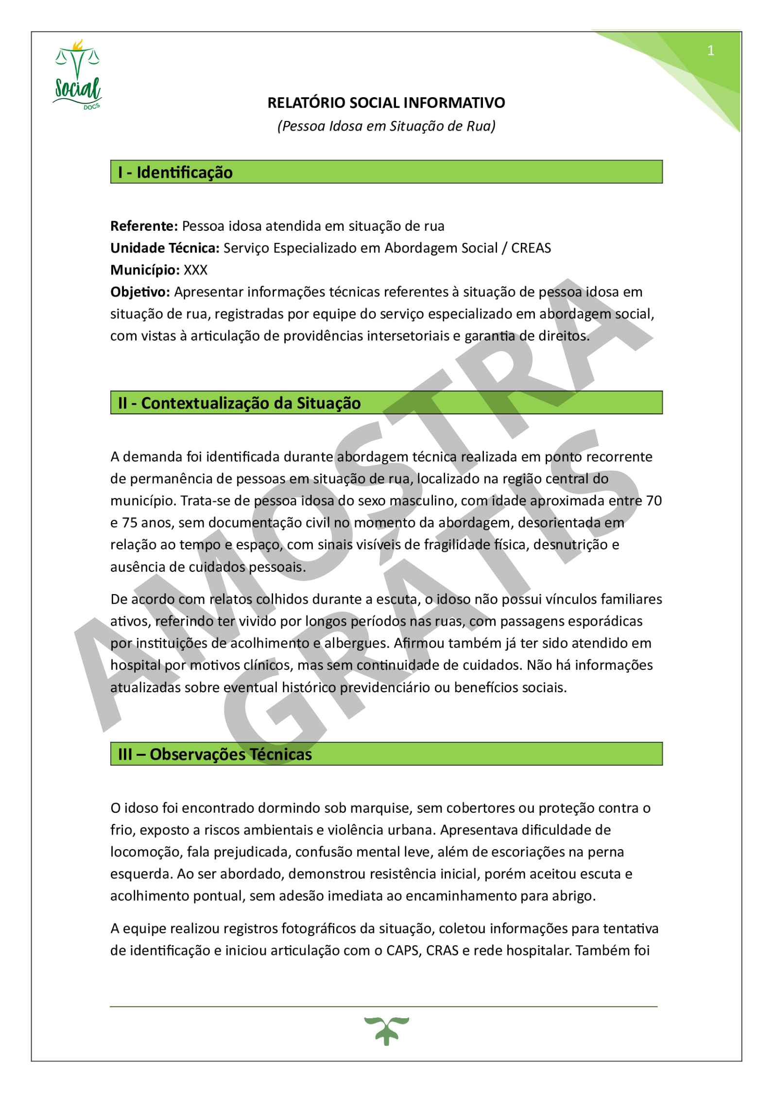 Modelo de Relatório Informativo – Pessoa Idosa sem Vínculo Familiar e em Situação de Rua